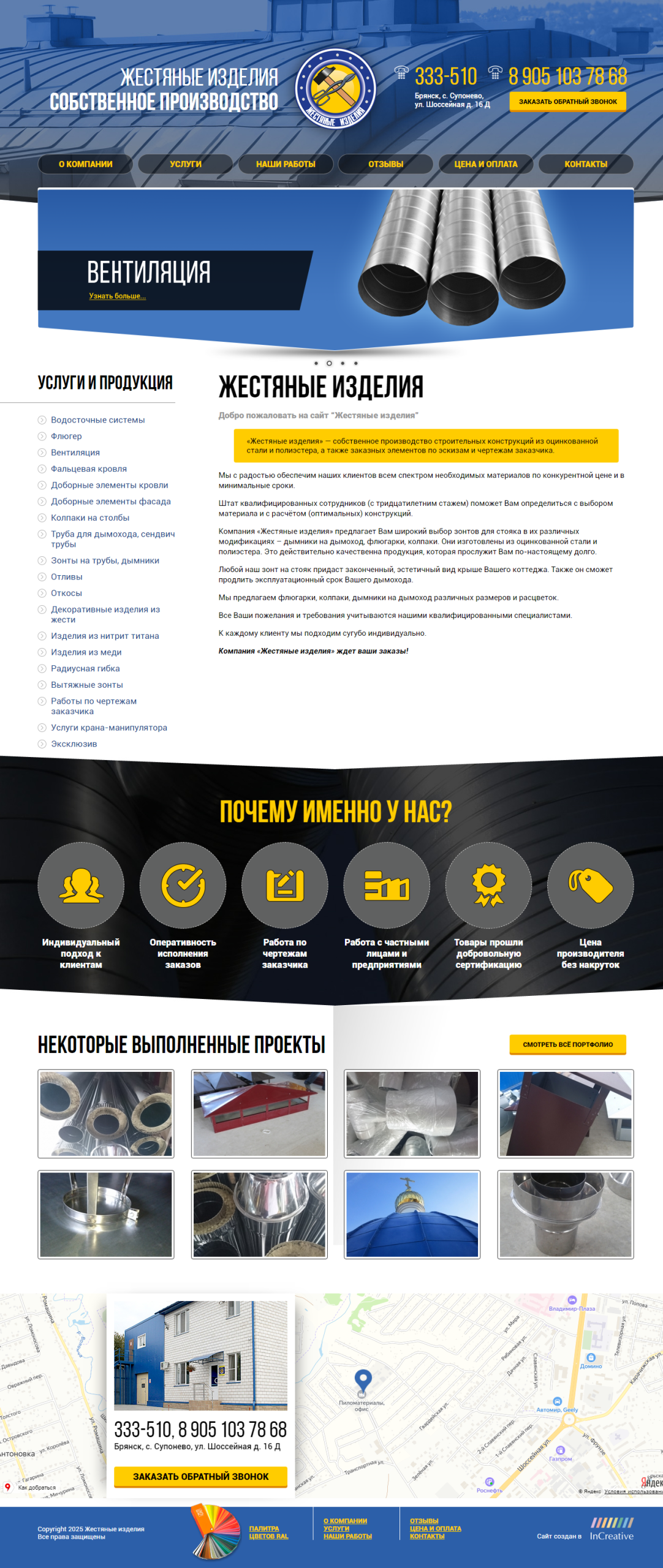 Студия «Инкреатив» предлагает комплексное решение для создания современного корпоративного сайта, который будет эффективно представлять компанию-производителя жестяных изделий. Основной фокус — демонстрация производственных возможностей и портфолио выполненных работ.