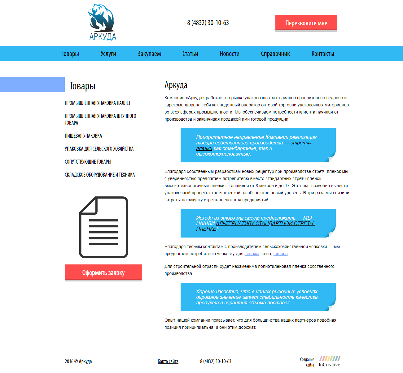 Наша команда создала уникальную платформу, которая поможет компании «Аркуда» эффективно представить свои упаковочные решения на рынке и значительно расширить клиентскую базу.
